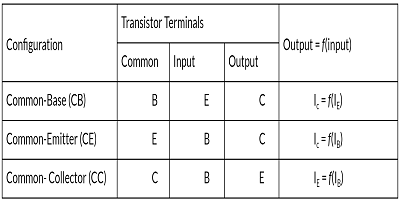 通常,晶體管放大器在其輸入和輸出之間共享一個(gè)公共端子,表2給出了三種可能的配置。